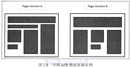 图2.9展示了可以在网站设计多变量测试中同时测试的两个页面元素组合(每个模块用不同的字母标注).测试可以找出表现最佳的元素组合。