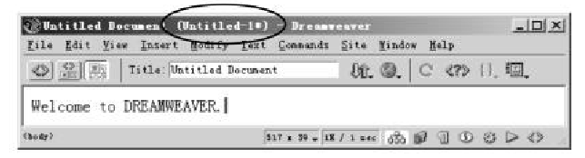 每次进入Dreweaver时,总是自动打开一个空白文档,即可新建一个网页。和在Word中的操作一样,在文档窗口内可以直接输入文本,如图所示