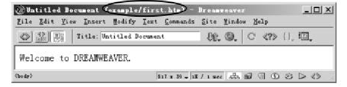 对照图可以发现,网页没有存盘时,文档窗口标题栏的圆括号内显示的文件。而一旦网页存了盘,则文档窗口标题栏的圆括号内就显示了当前网页的文件名(firsthtn)及其所在的文件夹(example)。