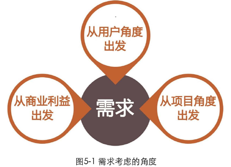 当然,再好的需求也要有开发人员的配合,要保证在时间允许的前提下项目可实现才行。因此在实际工作中,需要从商业、用户、技术三个角度来平衡考虑需求。缺少了任何一个角度都是十分危险的,项目都有可能以失败告终,如图5-1所示。